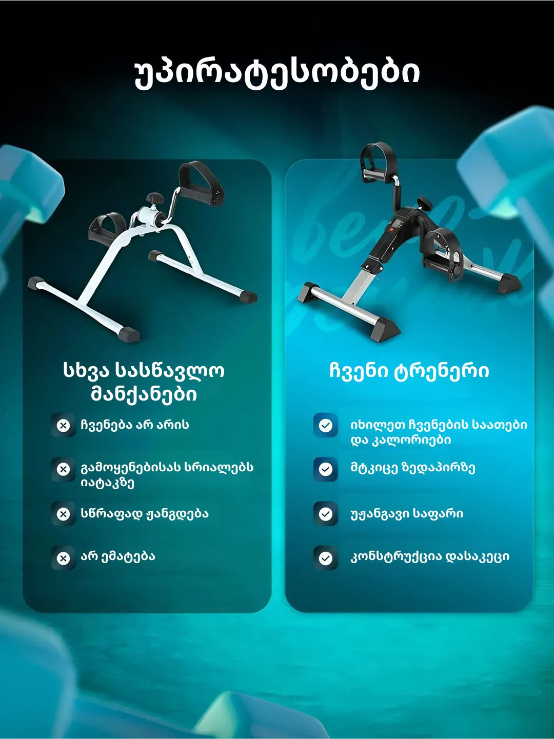 სახლში, ოფისში ან თუნდაც აგარაკზე - კომპაქტური ტრენერი ყოველთვის ხელთ არის.